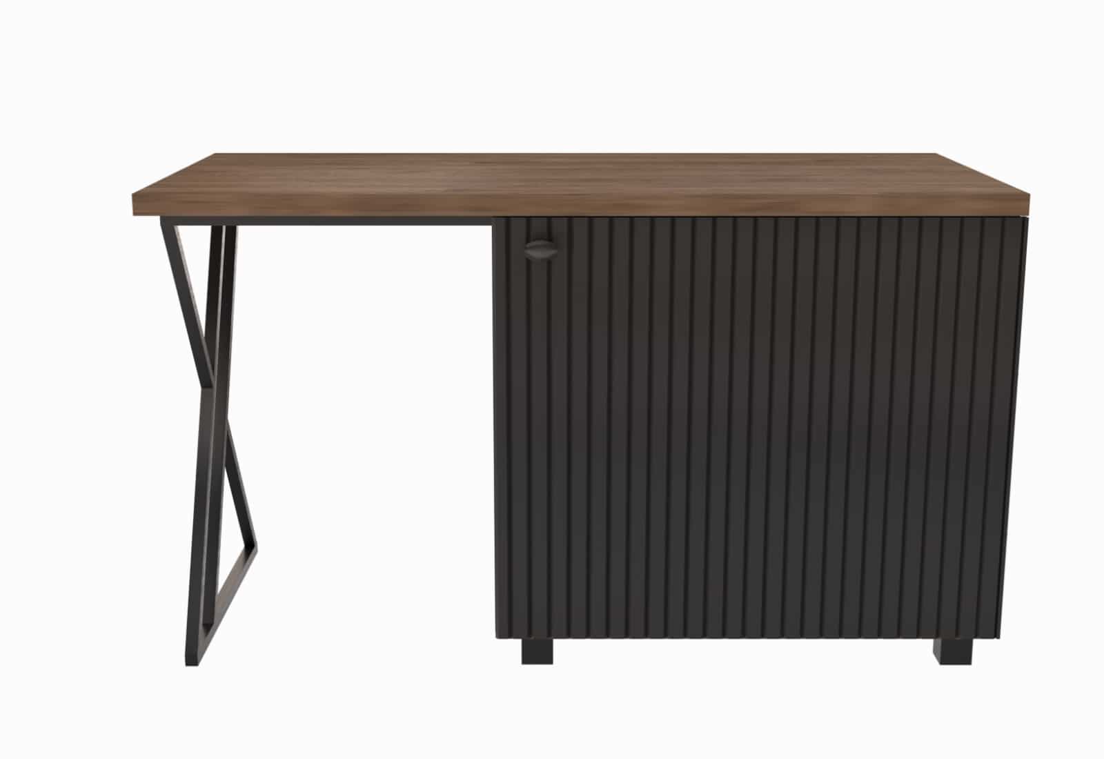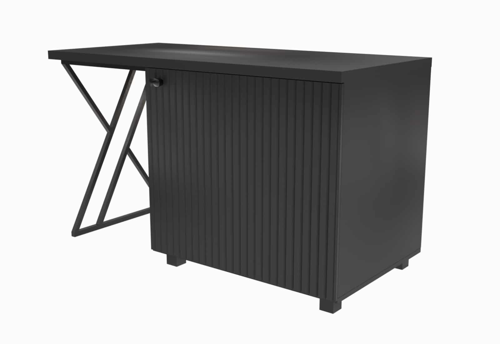 Стол с минибаром 1400*600*750в, металлокаркас, ЛДСП Колор 16 мм, топ 32 мм, фасад МДФ 16 мм, фрезеровка вертикальными полосами, кромка 2+0,4 мм, скр.фурнитура, доводчик