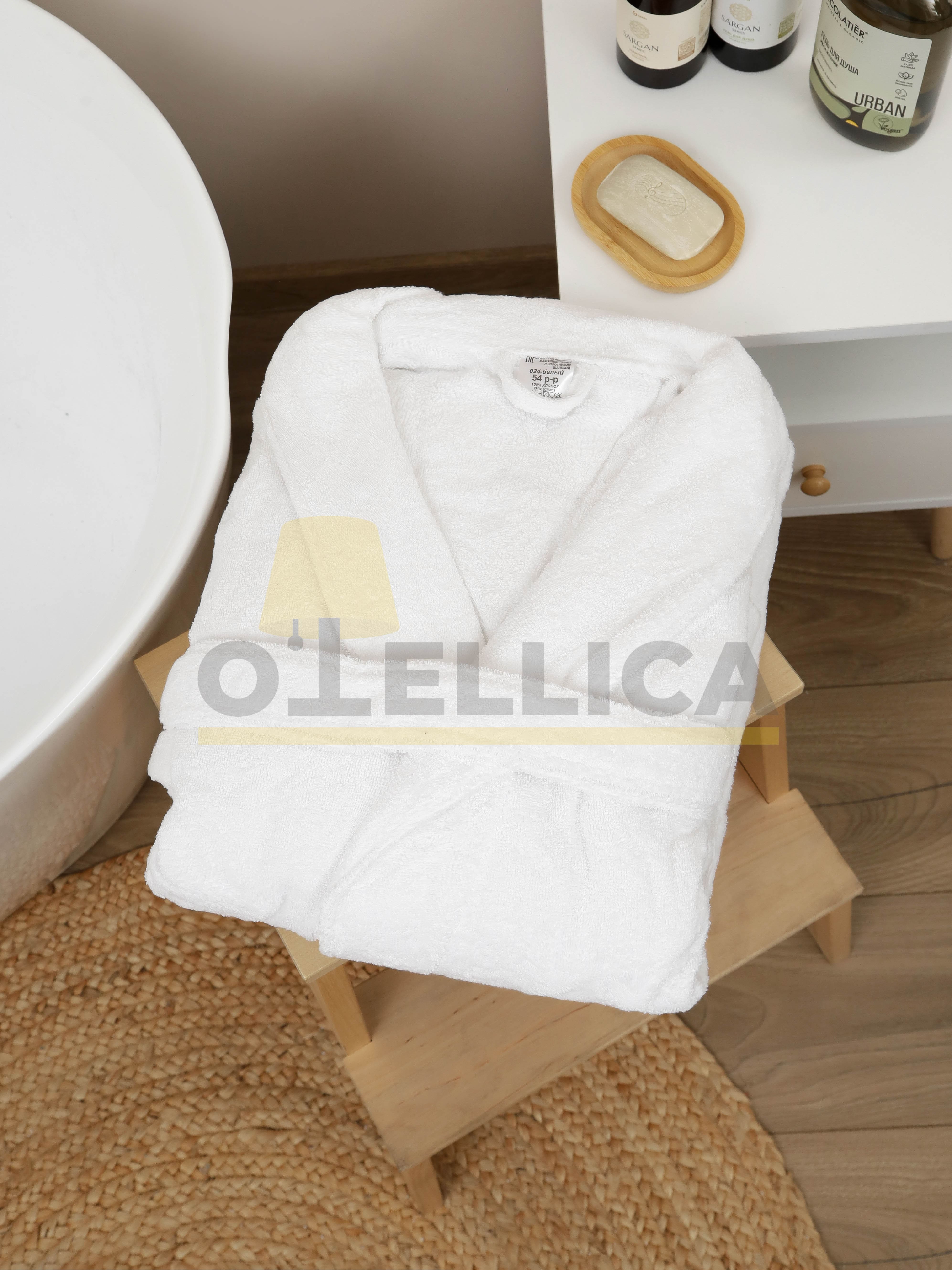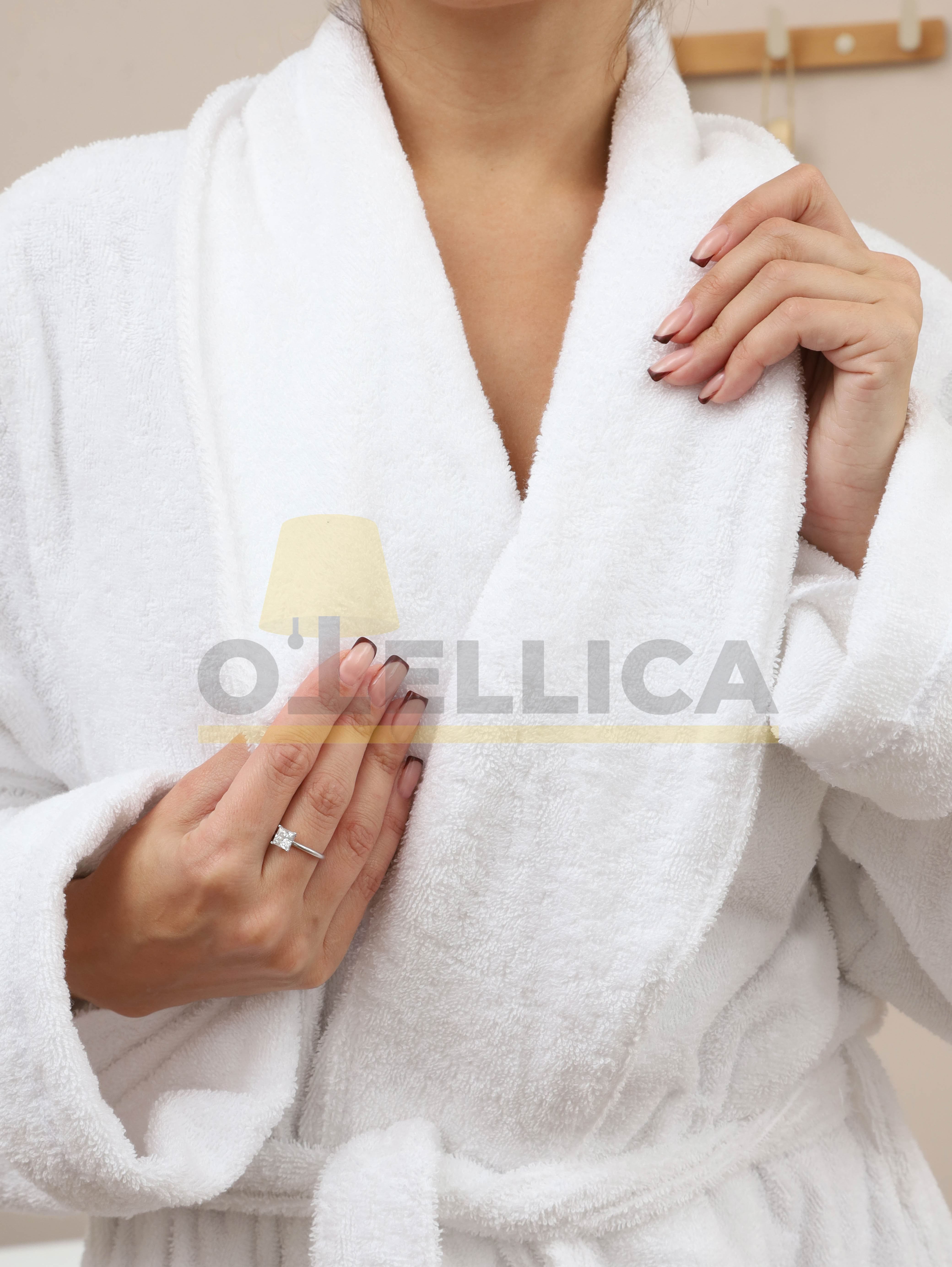 Премиальный белый махровый халат для отелей из 100% хлопка плотностью 365 г/м². Двухсторонняя махра высшей категории с одинарной крученой нитью 16/1 и длиной петли 4 мм обеспечивает высокую впитываемость, мягкость и износостойкость. Халат с воротником шалька имеет универсальный размер 42–54 и подходит большинству гостей. Благодаря повышенной плотности изделие выдерживает интенсивную эксплуатацию и многократные стирки, сохраняя форму и внешний вид. Используемые умягчители поддерживают мягкость даже после 100 стирок. Халат соответствует требованиям гостиниц 3–5, spa-комплексов и апарт-отелей.