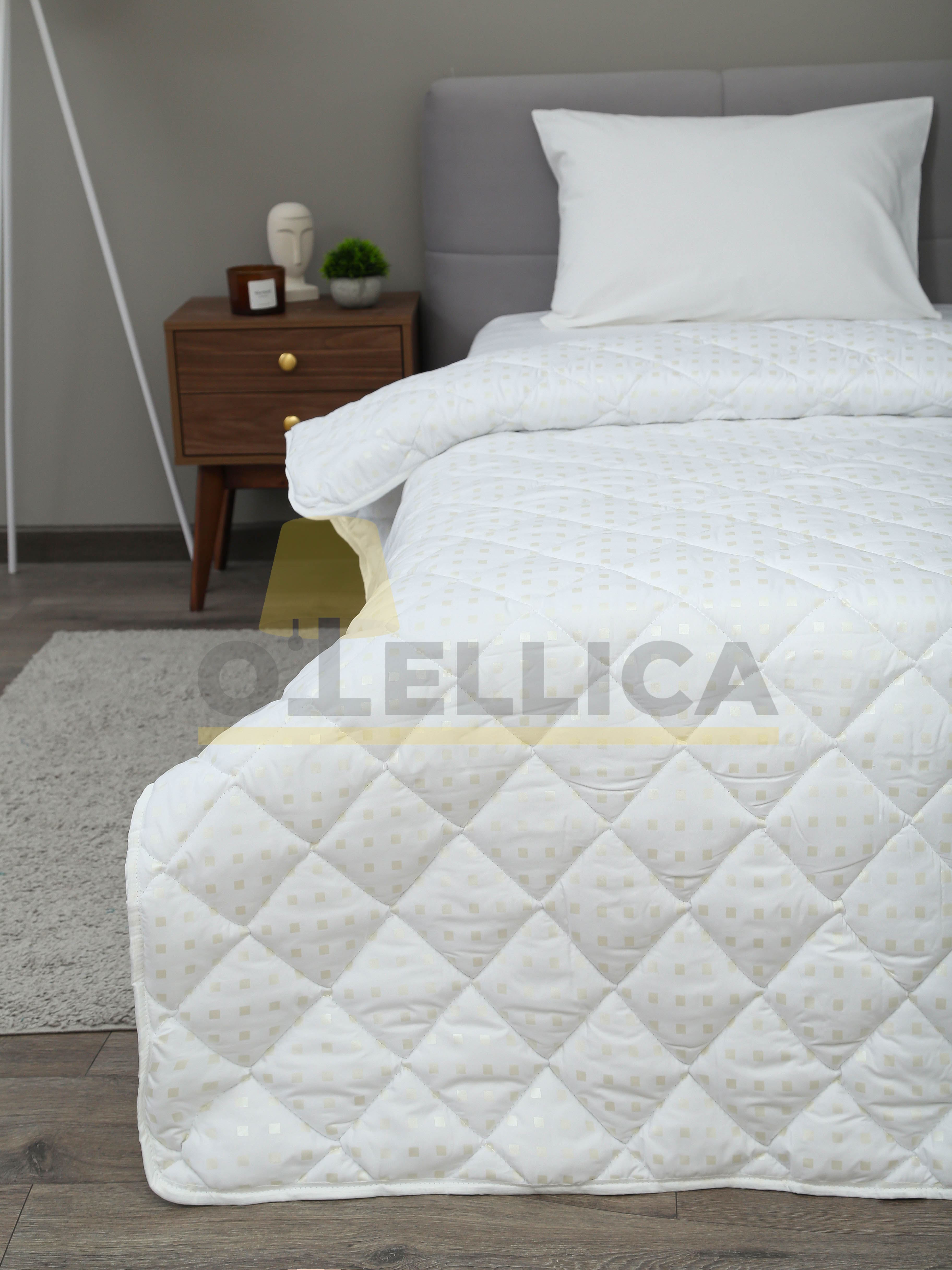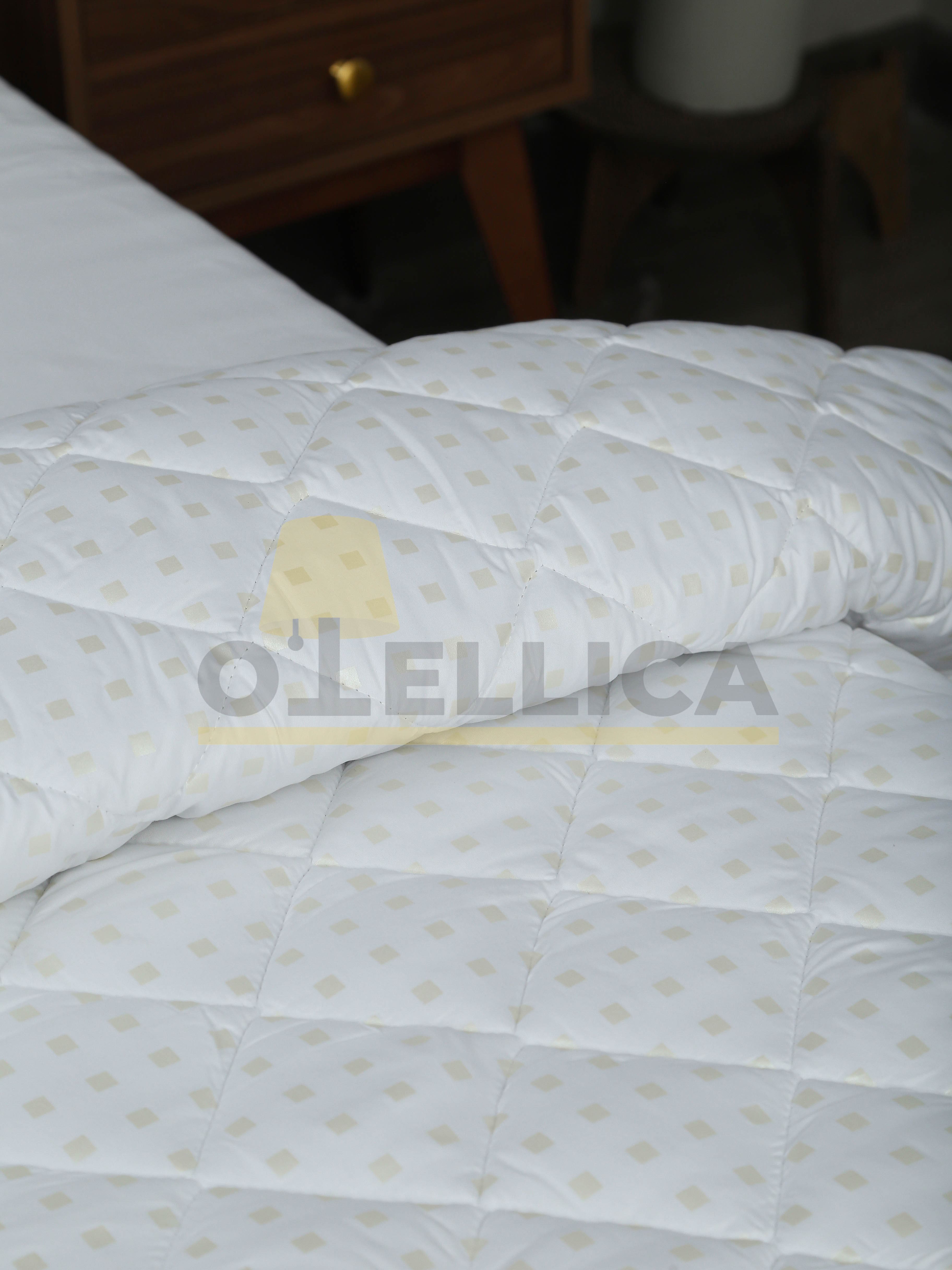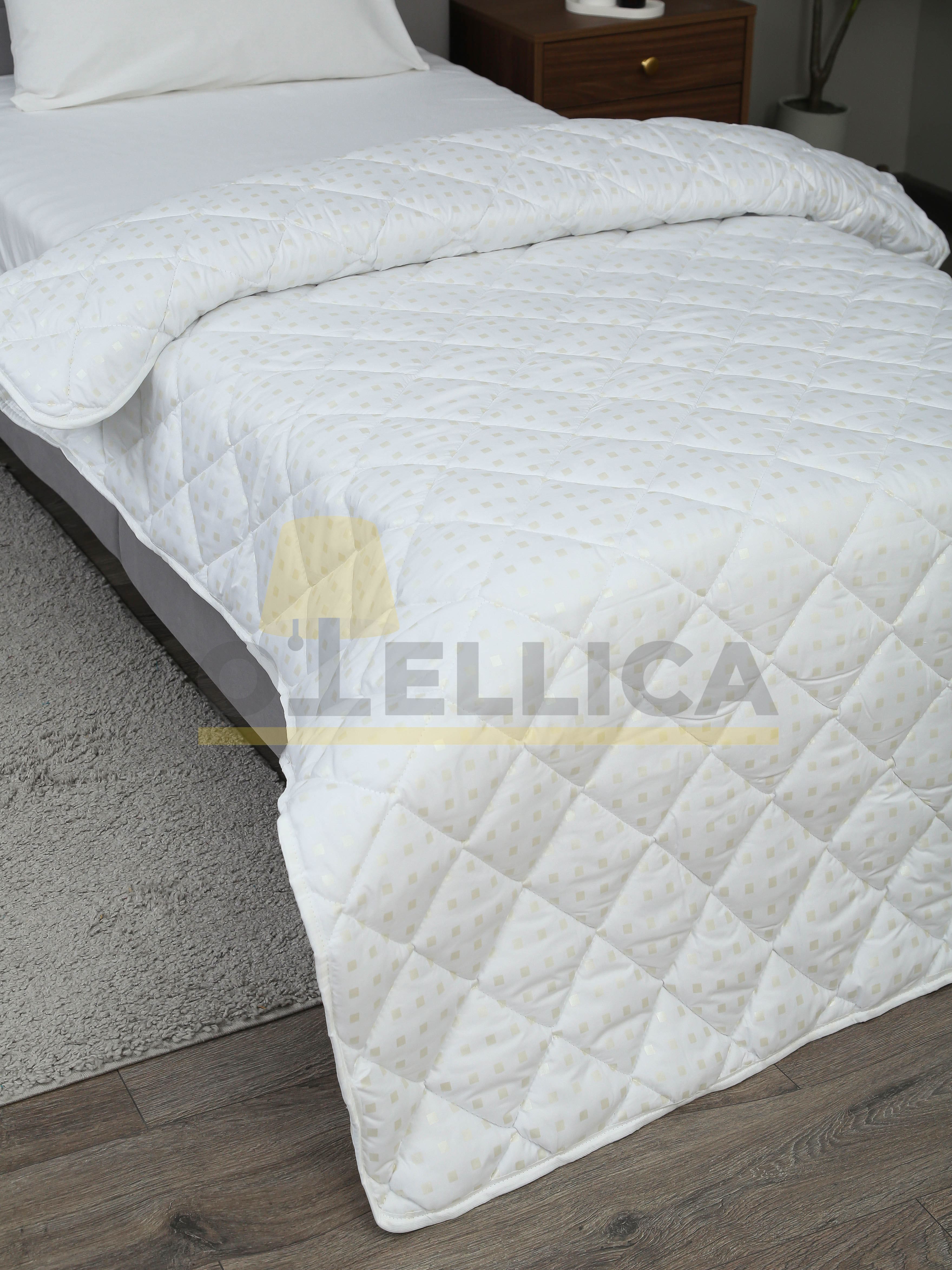 Одеяло 140×205 см из тика с полиэфирным наполнителем и лебяжьим пухом 300 г, многоигольная стёжка обеспечивает равномерное распределение. Тёплое, лёгкое и гипоаллергенное — идеальное решение для гостиниц, глэмпингов и отелей. Устойчиво к сбиванию, простой уход и комфортный сон гостей круглый год.