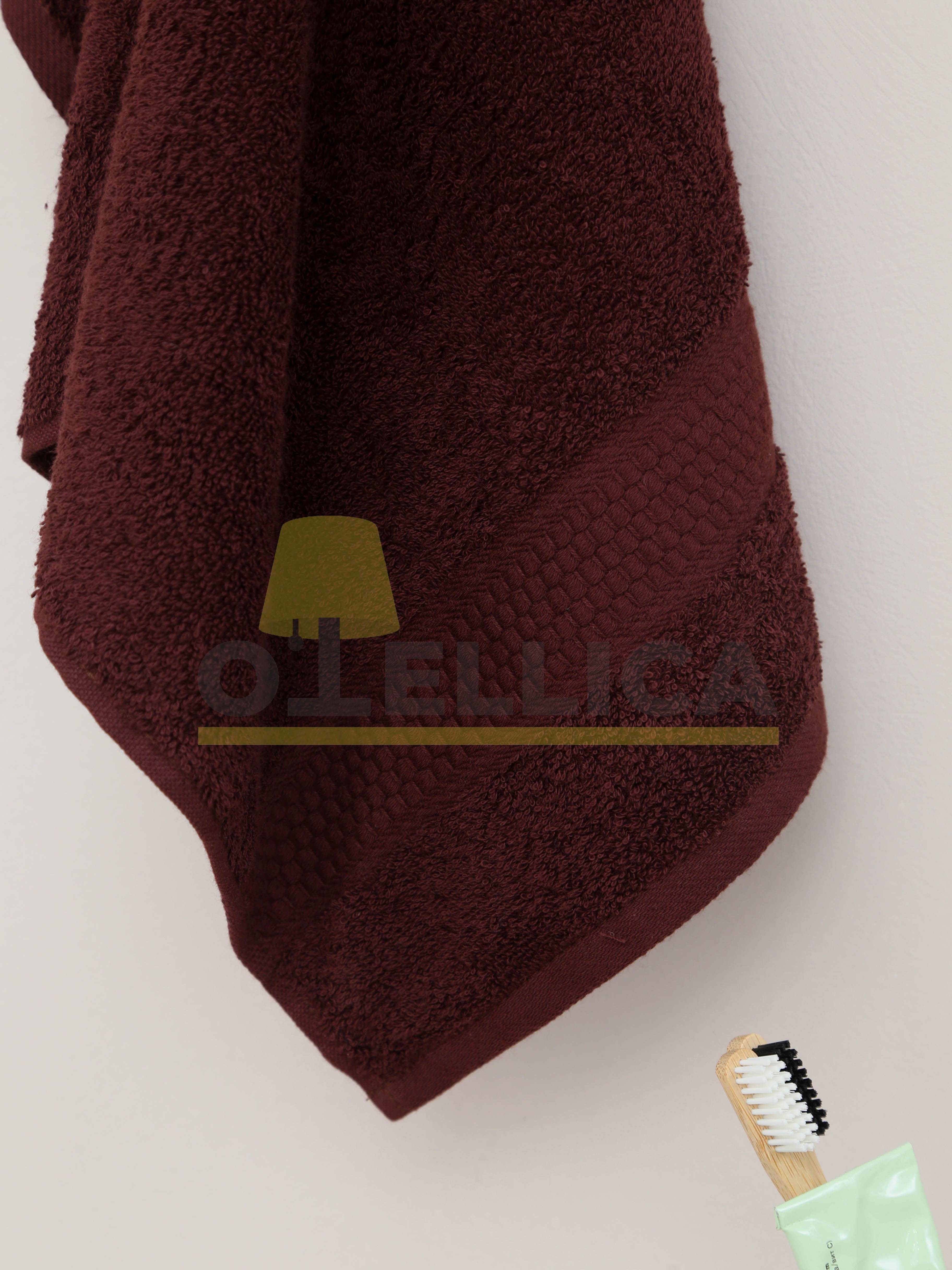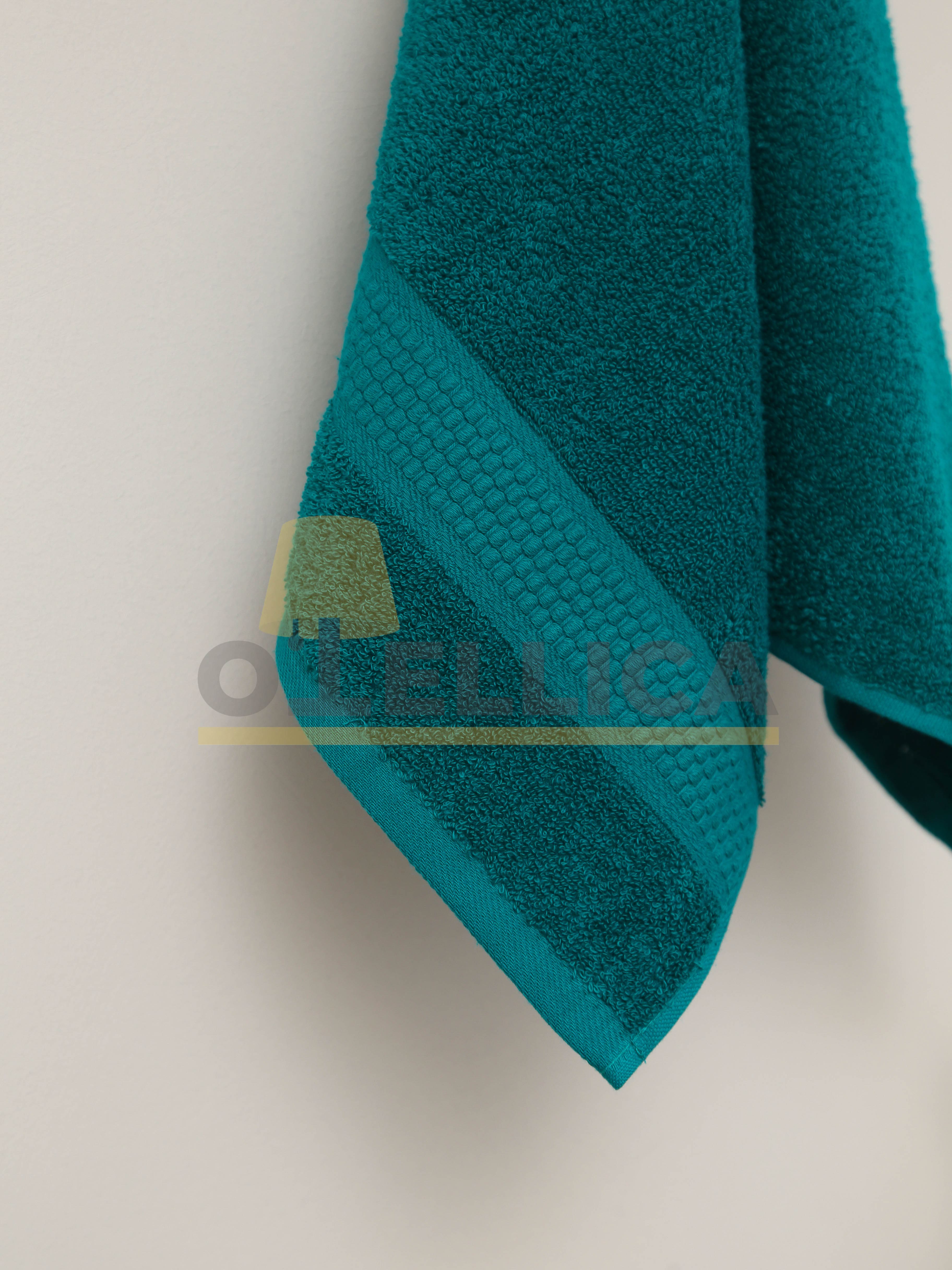 Гладкокрашеный бордюр придаёт изделию аккуратный и завершённый внешний вид, подчёркивая статус объекта размещения. Цветное исполнение позволяет гармонично интегрировать полотенца в интерьер ванной комнаты и повысить визуальную привлекательность номерного фонда. Палитра включает три универсальных и востребованных цвета — шоколадный, синий и бирюзовый, которые считаются оптимальным и стильным решением для гостиниц, апарт-отелей, хостелов и загородных комплексов.